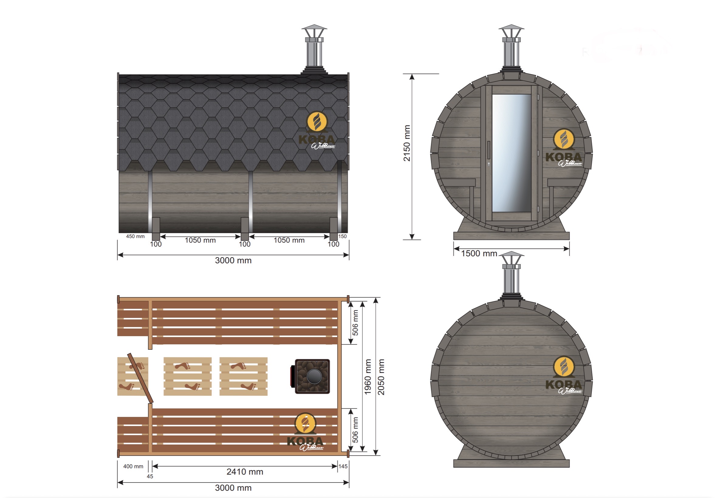 • 1x Fasssauna